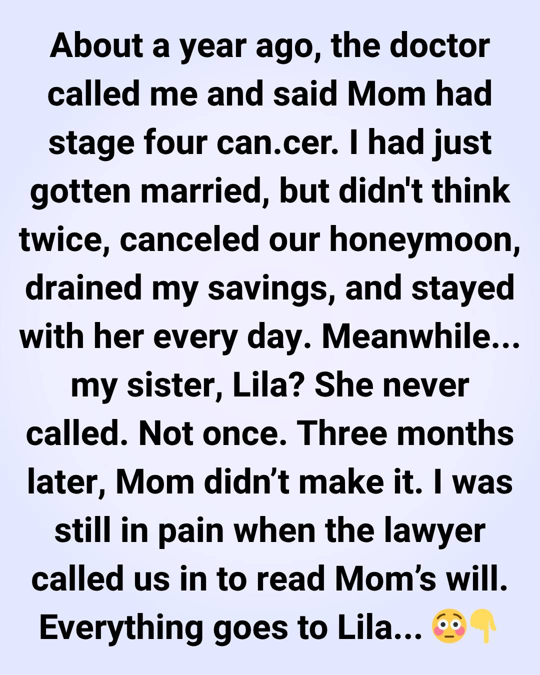 I Sacrificed for My Mother During Her Illness, but Her Will Was Unexpected