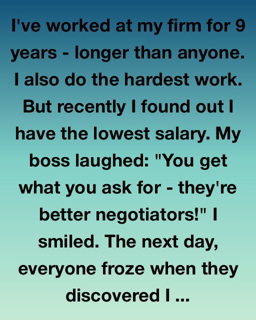 I told her what my boss said in that meeting. How he laughed at my lower salary like it was some sort of joke. How I left not out of anger, but because I finally realized my value wasn’t going to be recognized there.