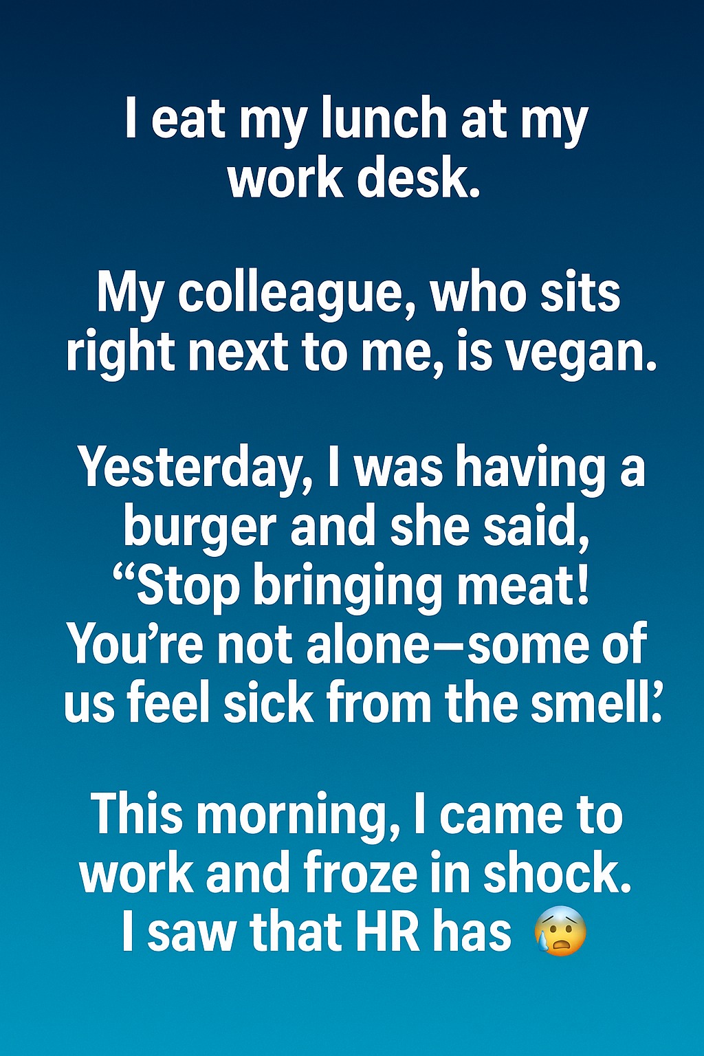 The room went silent. The team lead looked uncomfortable. I felt my face flush. It was an overreaction so sudden, so disproportionate, it was shocking. My comment hadn’t been an attack. Had it? I just meant he seemed health-conscious. I stammered, “I… I just meant you always bring your own, I thought maybe you had preferences…”
