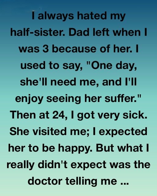 I always hated my half-sister. Dad left when I was 3 because of her. I used to say, “One day, she’ll need me, and I’ll enjoy seeing her suffer.” Then at 24, I got very sick.She visited me; I expected her to be happy. But what I really didn’t expect was the doctor telling me she was the only compatible match for a liver transplant. It was like being punched in the chest by the universe.