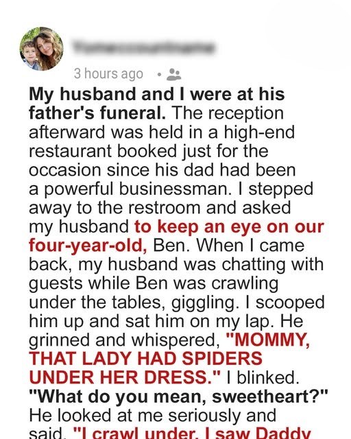 They say children see the world without filters. Ben saw the truth that day under the table at the funeral. And though it broke my heart, it also set me free.