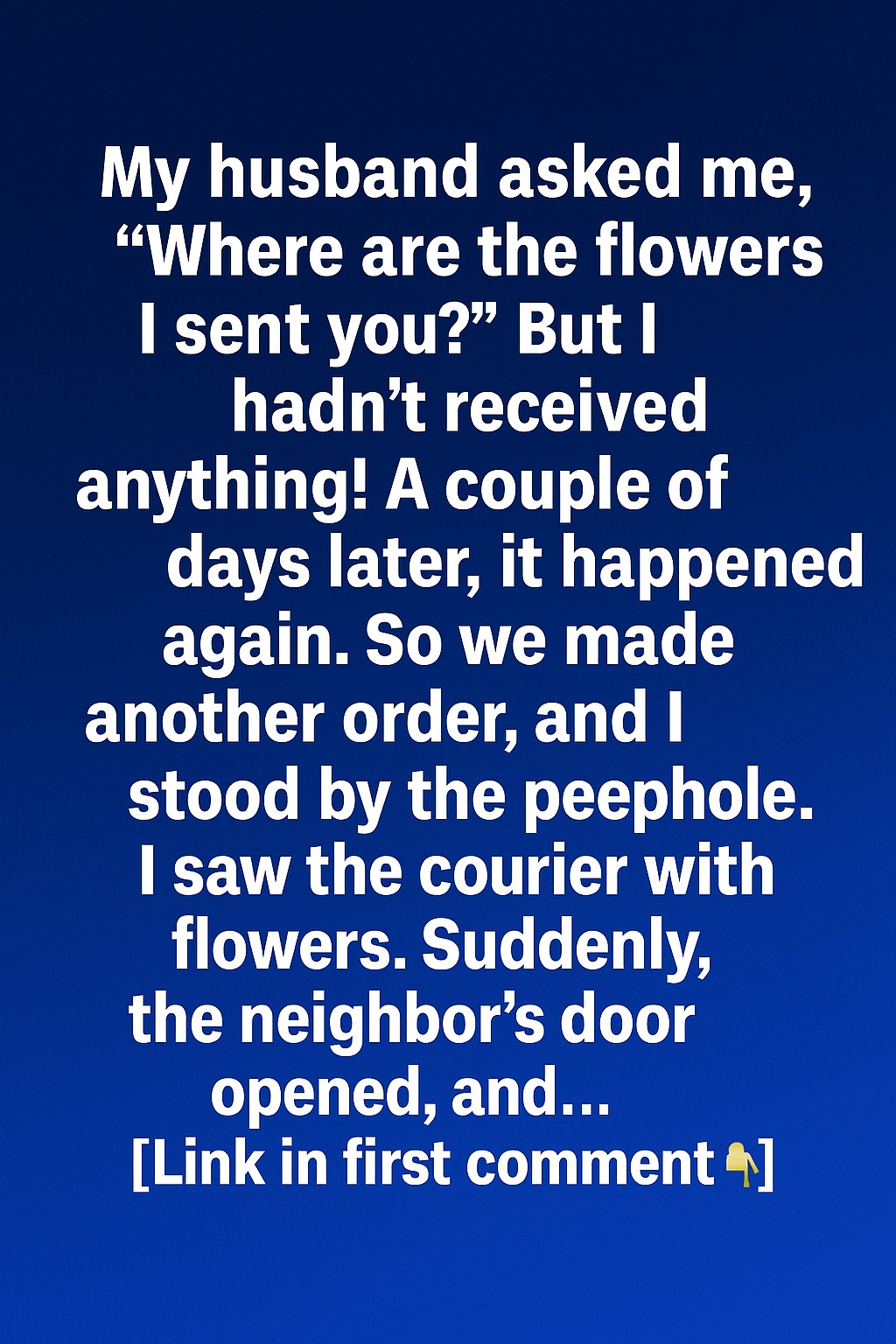 But they never arrived.I checked with reception three times. Nothing. Not even a delivery slip. Maybe they’re just running late, I thought, trying to quell the tiny flicker of unease. When he called that evening, I tried to sound casual. “Hey, honey, the flowers never made it.”