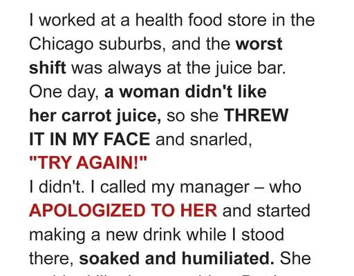 It was nearing closing when she approached. Already agitated, her voice sharp as she demanded to know why a specific brand of organic, cold-pressed apple juice wasn’t on the shelf. The kind that cost more than a small meal. I explained, as patiently as I could, that we were out, that a new shipment was due tomorrow. She didn’t like that answer. She liked it even less when I suggested an alternative. Her face twisted, a sudden, ugly mask of entitlement and frustration.