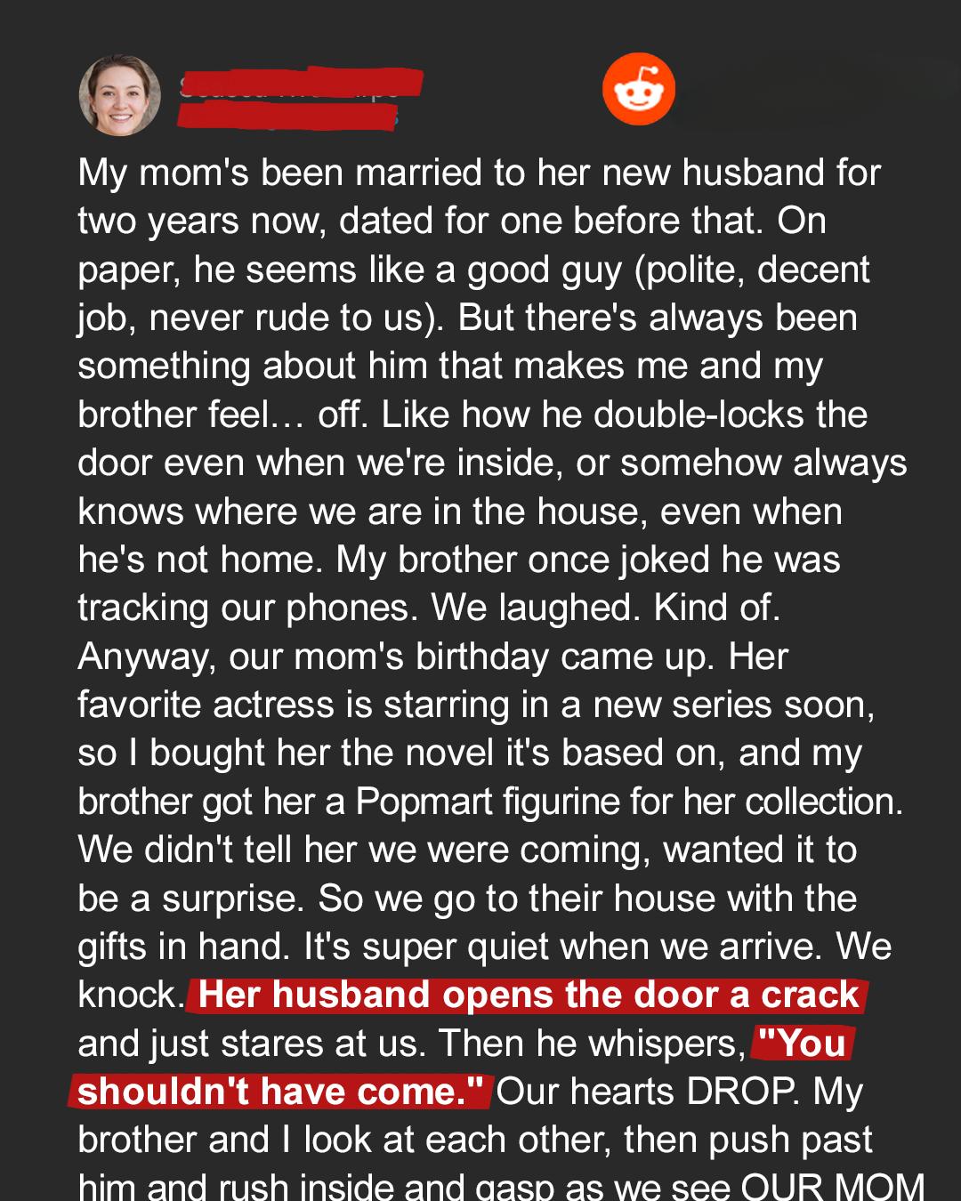 He was different. Taller than my father, with a sharp, almost predatory glint in his eyes that I’d never quite been able to shake. He made me uneasy. But Mom was glowing. Really glowing. The kind of radiant happiness I hadn’t seen on her face in decades. So, I pushed my reservations aside. For her. This was her special day. A small, intimate dinner at her new home, just the three of us. Candlelight, her favorite wine, the scent of lavender and simmering food filling the air. It felt almost perfect, despite the quiet tension that always seemed to hum beneath the surface whenever he was around.