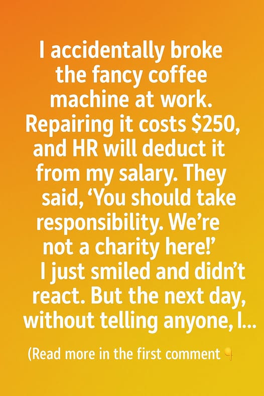 And every single morning since, when I walk past that coffee machine, I don’t smell coffee. I smell deceit. I smell betrayal. And I remember the unexpected lesson I learned that day: that sometimes, the things we try hardest to fix aren’t the machines, but the gaping holes left in our hearts by the people we loved the most. And some breaks, you realize, are PERMANENT.
