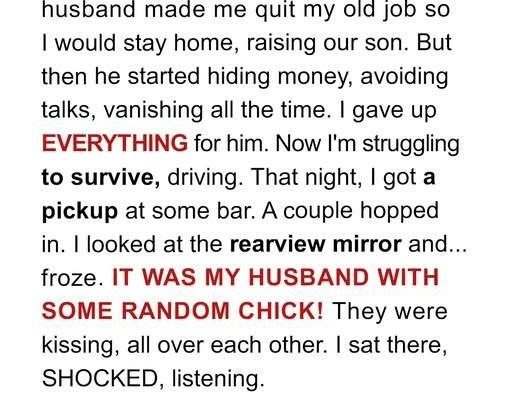I kept my poker face on, a blank slate. The perfect, anonymous driver. Inside, I was a molten core of rage and anguish. This is real. This is happening. He looked so happy. Happier than he’d looked with me in years, maybe even ever. Was I just… not enough? All those quiet nights, all those shared dreams, all those years of building a life together – was it all a lie?