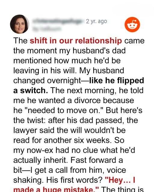 And the divorce? It wasn’t because the money changed him. It was because the inheritance, his father’s final act, revealed that ongoing, hidden support. It blew his cover. He no longer needed the narrative of the struggling, abandoned man. He no longer needed me to prop up that elaborate, sickening lie.