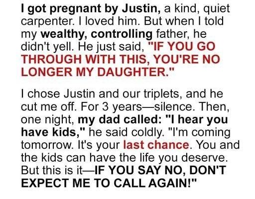 MY FATHER DIDN’T CRY BECAUSE HE REGRETTED KICKING ME OUT. HE CRIED BECAUSE HE KNEW HE’D TOLD THE MAN I LOVED HE WAS DYING, AND YET HE WAS STANDING THERE, ALIVE AND WELL, WITH OUR DAUGHTER.