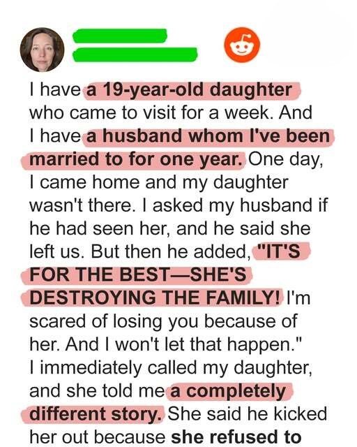 My husband. He did it. While I was gone.A cold dread seeped into my bones. This wasn’t a fight. This wasn’t a teenage tantrum. This was… different. I called her immediately. Her voice was a ragged sob, barely audible. “He just… he just told me to leave, Mom! He threw my bag out and locked the door! I don’t know why!” She sounded utterly lost, utterly terrified.