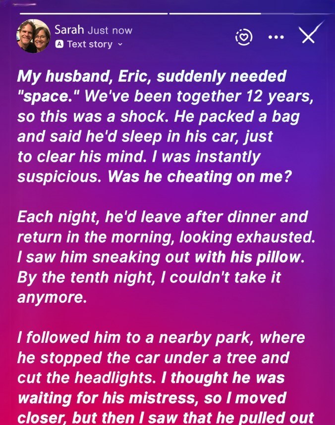 I tried to play it cool. “Okay, honey, stay safe. Let me know if you need anything.” But inside, a cold dread began to bloom. Sleeping in his car. My mind immediately went to the worst place. It always does. Cheating. Betrayal. The idea festered, growing uglier with each passing hour he wasn’t home.