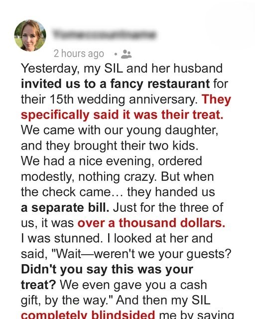That night, sleep was impossible. The number, $1,122, burned behind my eyelids. She made us look like fools. She had used her own anniversary to subtly strong-arm us into subsidizing her extravagant lifestyle. I kept replaying her innocent smile, her insistence on the expensive dishes. It wasn’t an oversight.