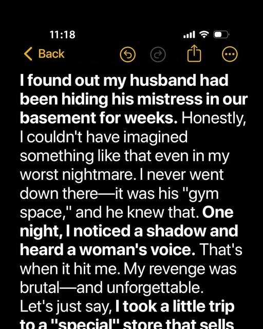 The whispers intensified. I couldn’t make out the words, but the tone… it was intimate. Soft. I didn’t need to hear the words. The evidence was right there, living and breathing beneath our very floorboards. He was hiding his mistress in our basement.