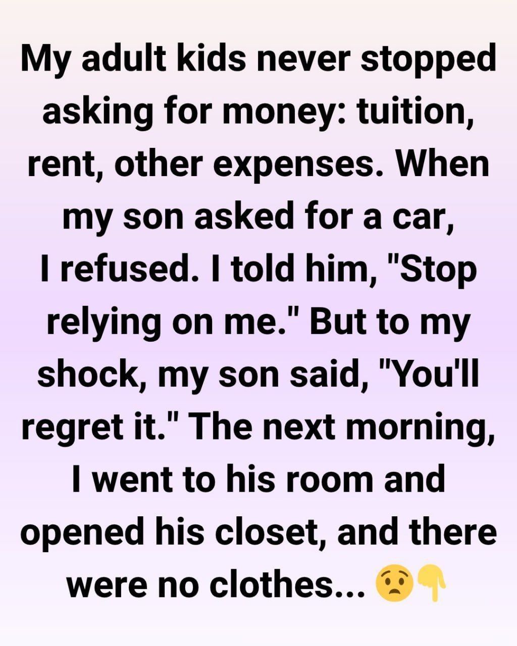 For years, it was a constant drain. From the moment they hit eighteen, it felt like the requests never stopped. Money for rent when they supposedly had jobs. Money for car repairs. Money for “emergencies” that always sounded suspiciously like concert tickets or the latest gaming console. Every call, every text, it felt like it started with “Hey Dad, listen…” and ended with a number. A number I was expected to just cough up.