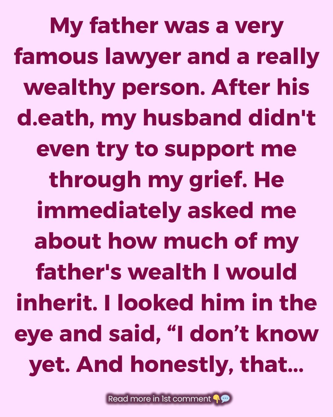 The day of the will reading arrived, shrouded in the same oppressive grey that seemed to follow me everywhere. It was just me, my husband, and Dad’s long-time lawyer in the study that still smelled faintly of Dad’s pipe tobacco and old books. The air was thick with unspoken tension. My husband sat beside me, his hand resting on my knee, but it felt cold, possessive, not comforting. I just wanted it over.