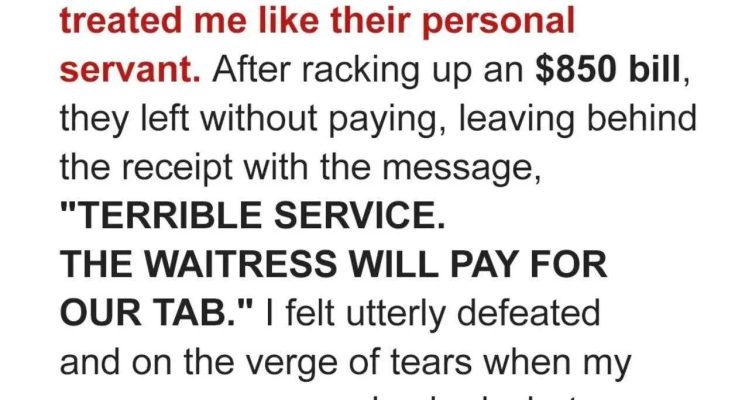 I felt a cold dread spread through me. The manager, a man who saw dollar signs where I saw my future, came over. His face was thunder. He picked up the check presenter. Empty. He stared at me, then at the table. “They just… walked out?” he asked, his voice dangerously low. I could only nod, numb. $850. The bill. An astronomical amount for a single table. My entire shift’s potential earnings, gone. More than that, a massive hole in the restaurant’s profit, which meant a massive hole in my future. He made it clear: if I didn’t find a way to cover it, it would come out of my future paychecks. PANIC. Pure, unadulterated terror. How could I pay that? I can barely pay my rent! This wasn’t my fault! I did everything right! My mind raced, utterly frantic. I felt violated, robbed, and utterly, totally helpless.
