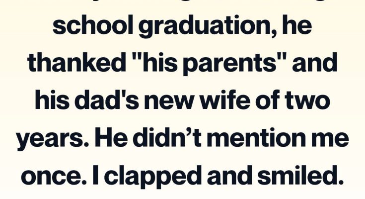 I spent fourteen years raising him. Fourteen years of my life poured into another human being, every single drop of my love, my energy, my very soul. He was my purpose. He was my heart outside my body. And then, he thanked his dad’s new wife instead.