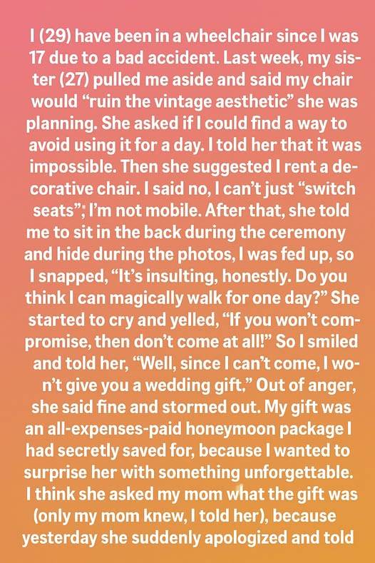 I started to depend on him. To crave his presence. When he left, the silence of my room felt deafening. When he walked in, it was like a sunbeam breaking through the clouds. He’d hold my hand, not just for support, but for comfort. He’d look at me, and I wouldn’t see pity, but a deep, quiet understanding. I started to wonder… could I truly marry someone who couldn’t bear to look at me, when there was someone else who saw me completely?