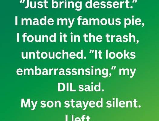 Years passed. I moved away for college, then for work. The pie story became a cherished anecdote, a testament to her wisdom. I’d tell friends, “My mom once threw out an entire pie just to teach me a lesson in kindness.” They’d marvel at her wisdom, and I’d swell with pride.