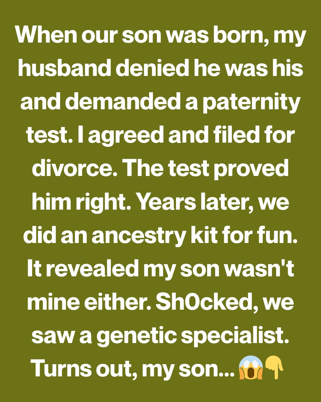 But the seed of doubt, once planted, takes root. And then, I remembered the ancestry kit. My ex-wife hadn’t sent hers in yet, it was still sitting on the dresser. A quick swab, just to be sure. Just to put my mind at ease. I told myself I was being stupid, but I couldn’t resist. I swabbed our child’s cheek. I swabbed my own. And I sent them off, separately, under the guise of finally getting our ancestry reports.