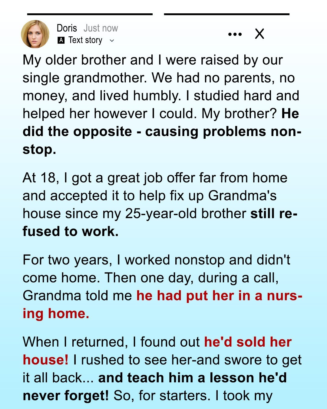 I never thought I’d be the kind of person who’d share something like this. Never. It’s too ugly, too raw. But it eats at me, every single day, every single night. I have to confess, before it consumes me whole. It’s about my brother, about Grandma, and about a revenge so sweet, it turned into the bitterest poison I’ve ever tasted.