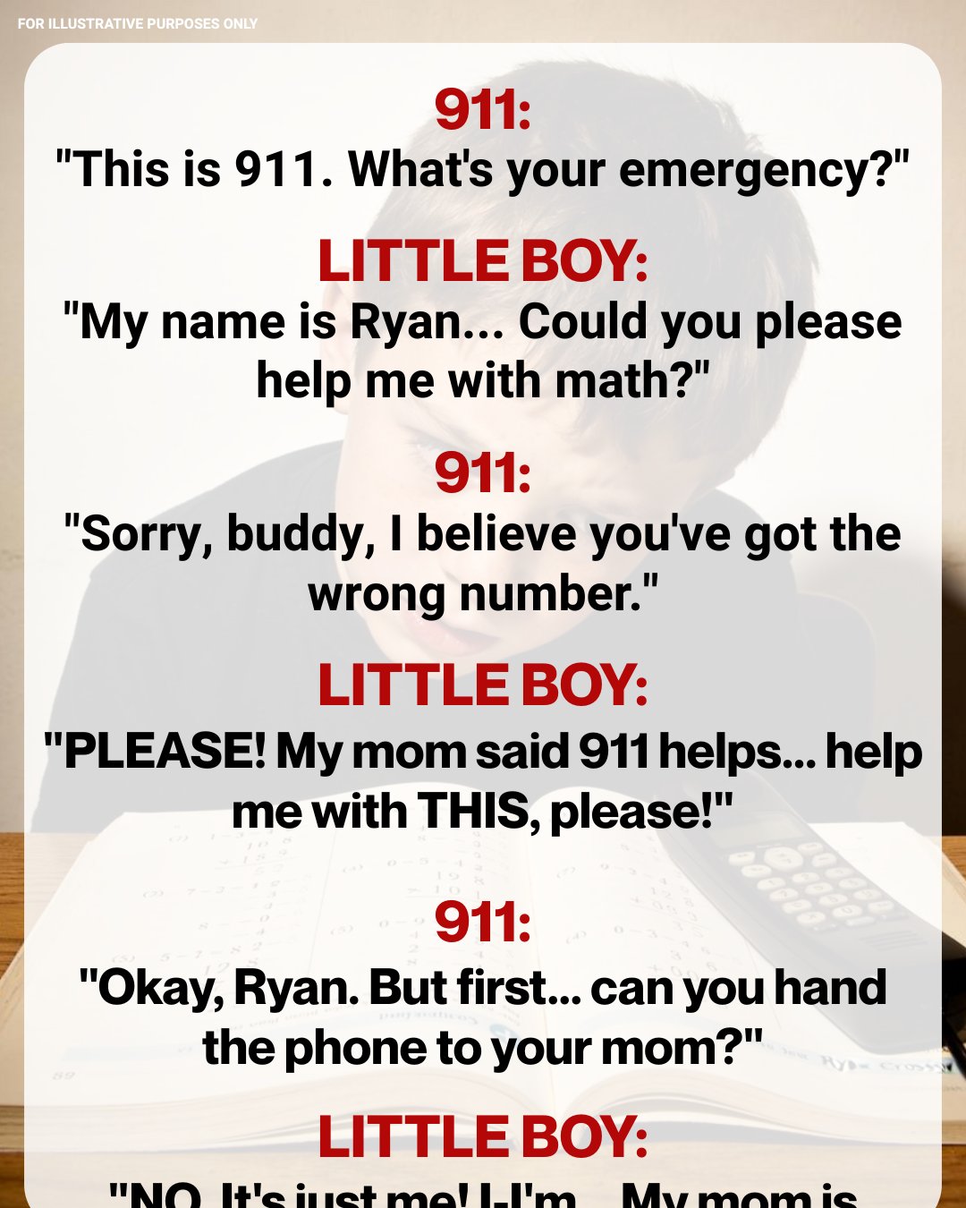 “The caller was a young male,” the second officer added, softer. “He said he needed help with his math homework.”