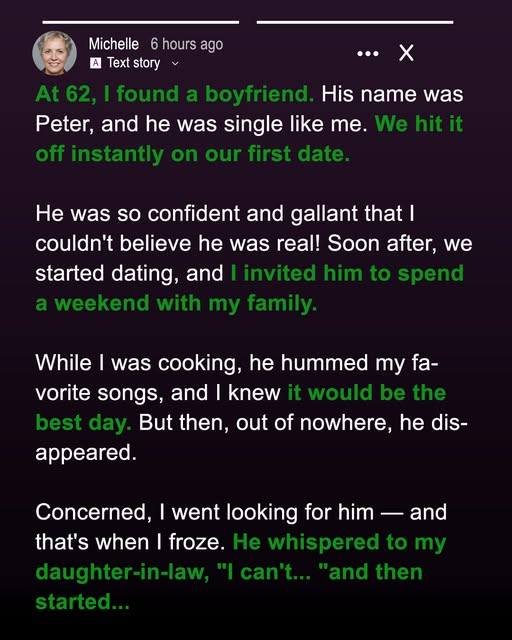 We started seeing each other in secret. It felt scandalous, thrilling, like I was a teenager again. We’d meet for coffee in a town a few miles over, take walks in secluded parks, share quiet dinners at his place after everyone else was asleep. Why the secrecy? I told myself it was because I didn’t want to make things awkward for my daughter-in-law, living so close. I didn’t want her to feel like she had to “approve” of my choices. And, if I was honest, a part of me relished the illicit thrill. He seemed to understand, never pushing, always respectful of my need for discretion.