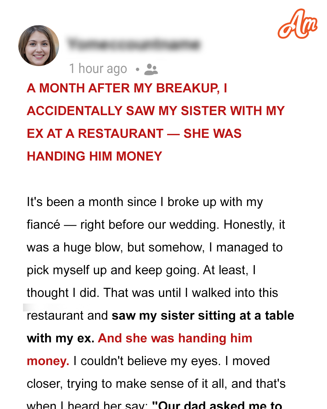 A month after my breakup, I was finally moving on when I stumbled upon my sister handing money to my ex-fiancé, the man who shattered my heart. My heart pounded. Were they together? Was she betraying me? The truth was worse than I ever imagined.