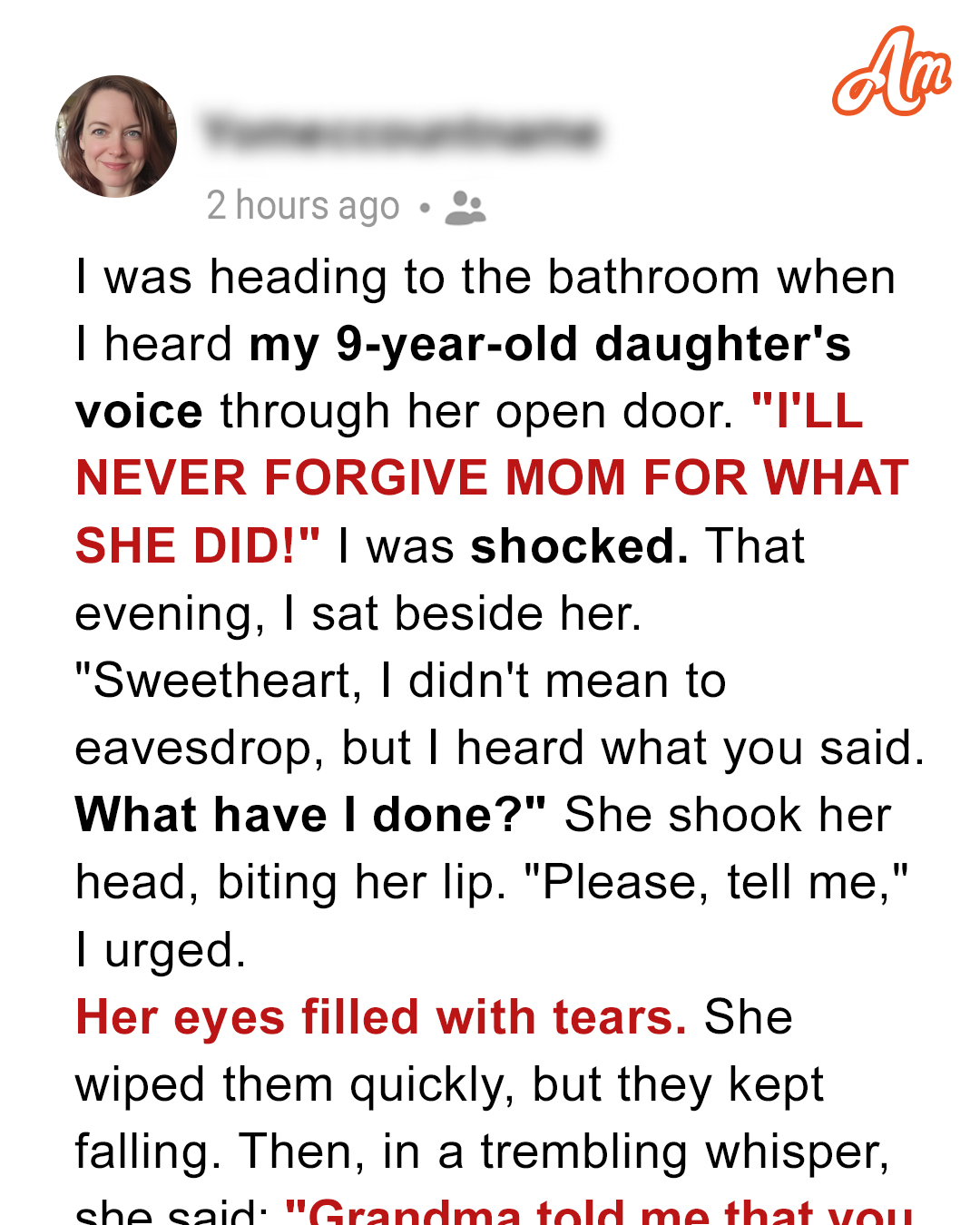 “Sweetheart, why would Grandma say something like that?” I asked gently, smoothing her hair back from her tear-stained face.