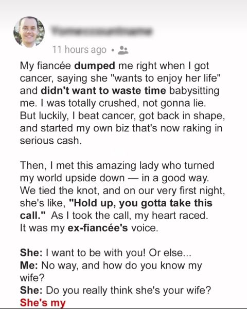 “And how dare you threaten me? It was your decision to leave me!”I heard her laugh on the call. “Do you really think she’s just your wife? She’s my sister!”“Your what?” I asked, shocked.“Yeah, she’s my sister. We planned this whole thing. After you got sick, I couldn’t handle it, but I regretted leaving every day. I wanted to make things right. So, we cooked up this plan for her to win you over, make you happy, and eventually reunite us. I never imagined she’d actually marry you. If you’d been this wealthy back then, with someone to care for you, I wouldn’t have left.”