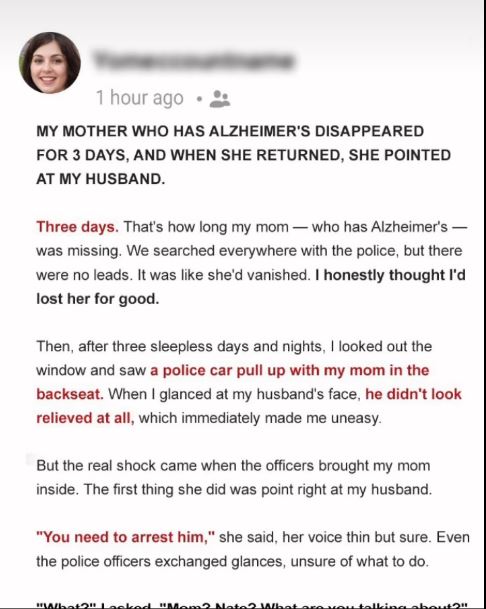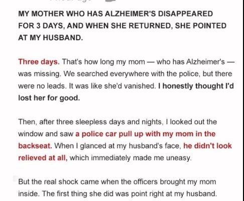 But that trust was shattered the second I got the call.It was Nate who called me to tell me that Mom was missing.“She’s gone, Claire!” he said frantically on the phone. “Edith! Your mom… I don’t know how it happened or when. I just woke up, and she wasn’t there.”Those words knocked the wind out of me. I sat at the edge of the motel bed, feeling like I couldn’t breathe. At least my kids were safely away. I could drive home as fast as anything.