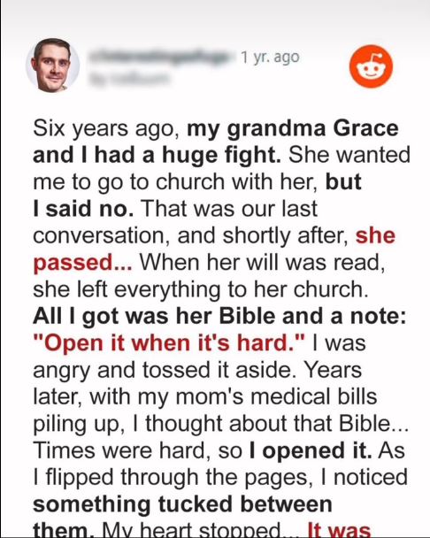 “Her Bible—it wasn’t just a Bible. She… she hid money in it. Thousands of dollars, Mom!”