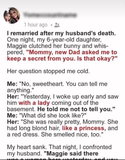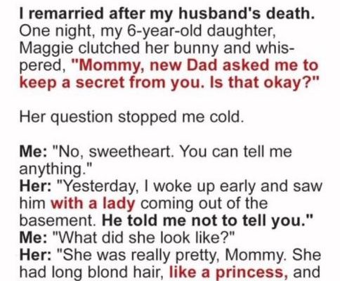 “I don’t know, Mama. I just know he told me not to tell you. But you said secrets are bad, so…” Her voice faltered, and she looked at me like she’d done something wrong.