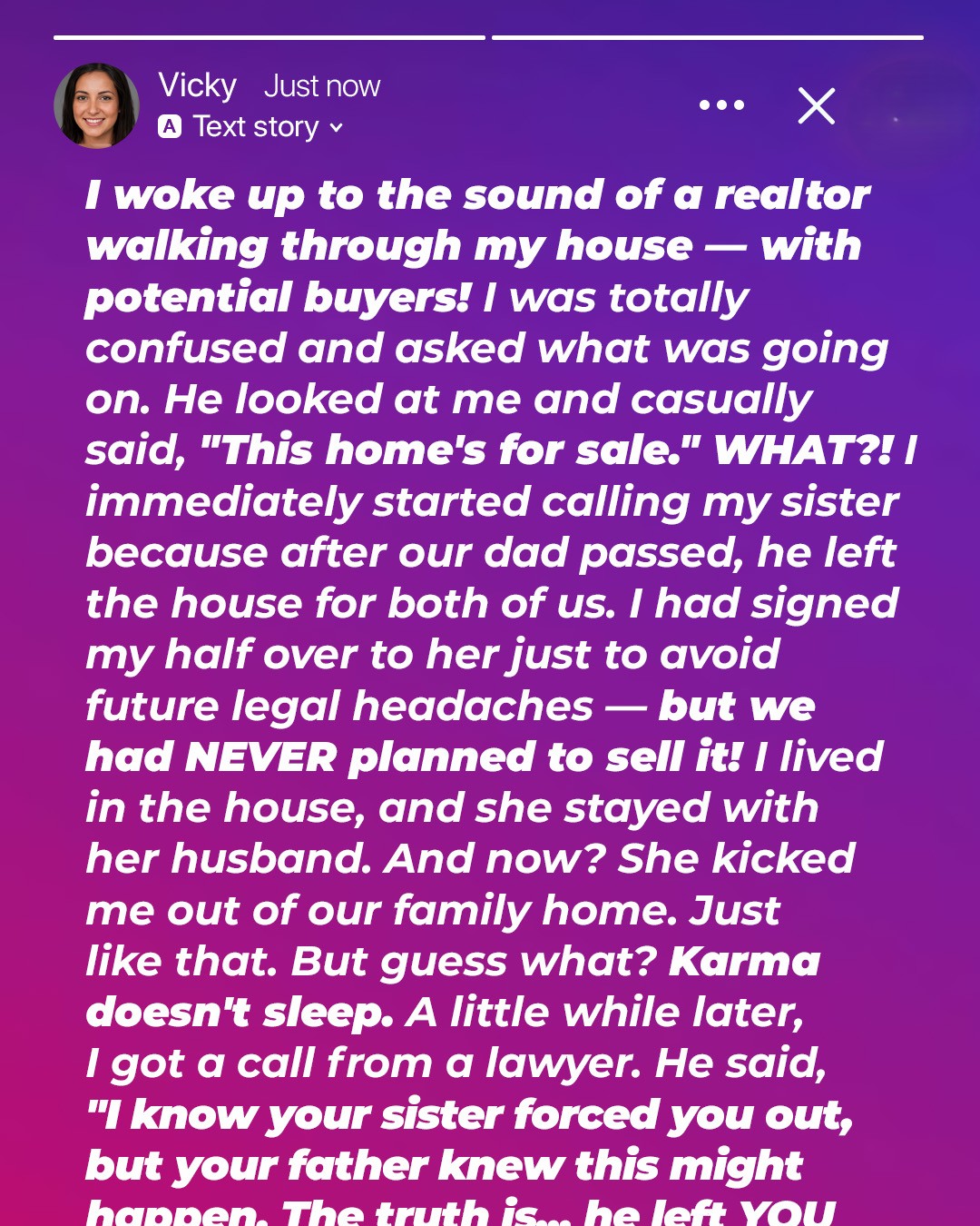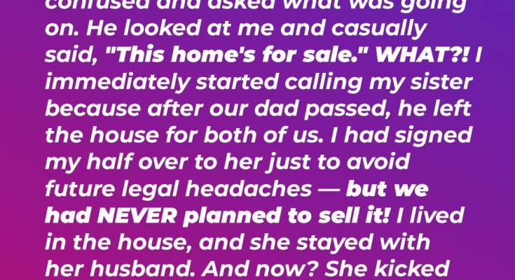 “Look,” her voice hardened, “I’m trying to be generous here. I could give you nothing, okay? The house is in my name. But I’m offering half the sale proceeds because you’re my sister. If you fight me on this, though, that offer disappears. Understand?”