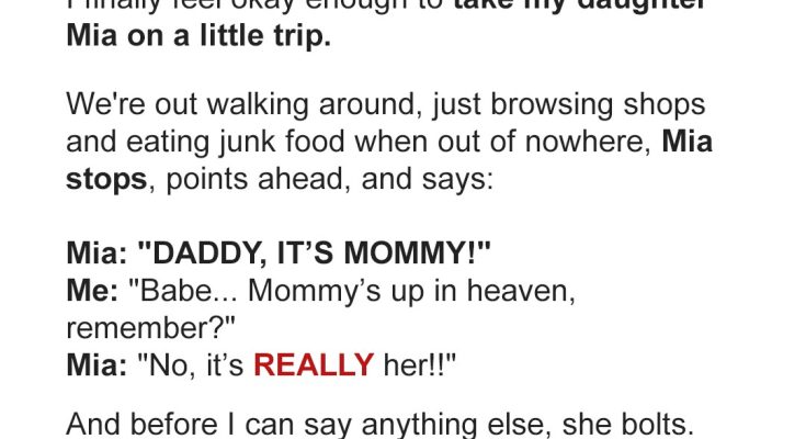 Mia, who still had her arms around the woman’s waist, cried triumphantly. “You see daddy, it IS mommy!”