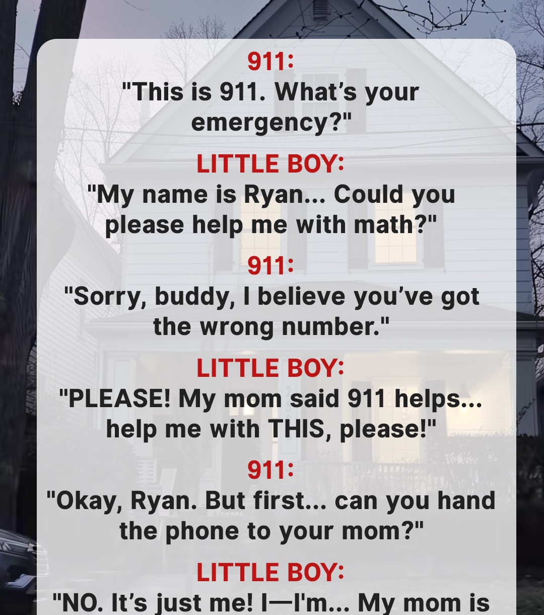 The operator hoped this was not a prank. They would often get random hoax calls from kids in town on Halloween. So this time, she decided not to give much thought to the little boy’s pleas with his math homework.“Something isn’t right… Officer, you stay with him while we search.”“Listen, son…What’s your name? the operator inquired.“My name is Ryan.”“Ryan, this is not a tutorial center… It’s an emergency line,” the operator said. “Is there any emergency we can help you with?”