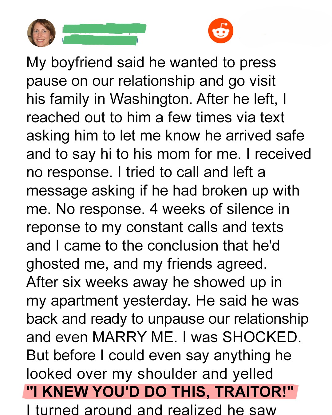 My Boyfriend Left Saying He Needed a Break and Ghosted Me for a Month—Yesterday He Came Back and Yelled, ‘I Knew You Would Do That, Traitor!’