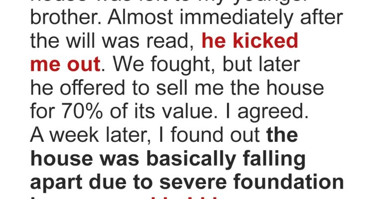 Three years after our father’s death, my brother sold our childhood home to me in a rush and at a discount. But two days after the sale, I found out the house was damaged beyond repair and that my brother had known all along. He took my trust for granted. Karma didn’t.“He’s finally at peace,” I whispered, tears streaming down my cheeks.