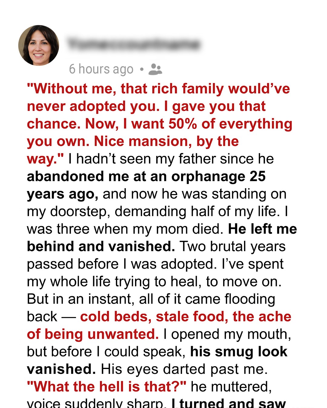 I Was Adopted 25 Years Ago – Last Month My Bio Father Knocked on My Door Demanding 50% of Everything I Own
