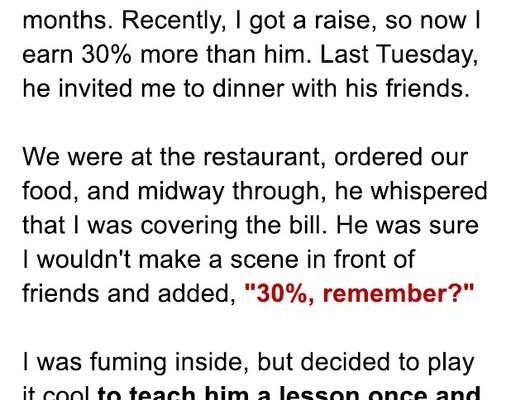 But it wasn’t ours. It was mine. My new salary, meant for our future, was steadily being siphoned off to pay for his social life. My bank account, which had swelled with that first post-raise paycheck, was slowly starting to dwindle. I started tracking it. In a month, I had spent nearly a thousand dollars on his friends’ dinners. A thousand dollars. On people who barely acknowledged me, who just nodded politely as I pulled out my card.