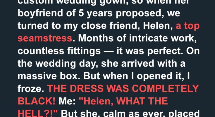 My stomach dropped. The dress inside was black. Not ivory. Not white. Completely, deeply, black. My hands started shaking. My mouth went dry.