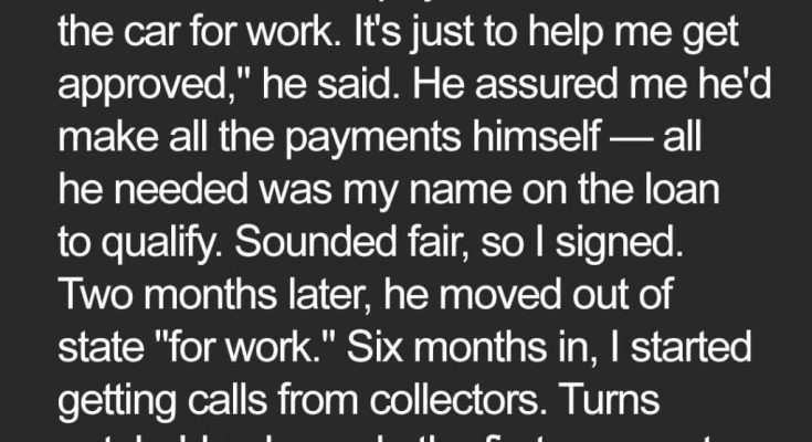 “It’s just a co-sign,” he said, sitting at my kitchen table, tapping his fingers nervously against the wood. “I need the car for work, Leah. My credit score is trash right now but yours is good. I’ll handle the payments… I just need your name on the loan to qualify. You won’t have to pay a cent.”
