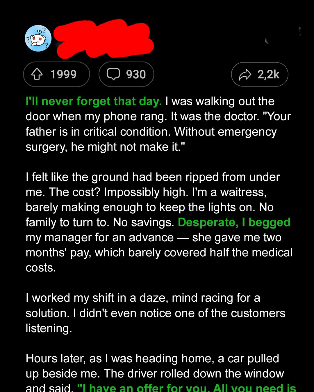 Later that evening, I walked home, my body aching from the long shift, my mind tangled in numbers, hospital bills, and the crushing weight of impossibility. I barely noticed the cold creeping through my thin jacket or the flickering streetlights overhead.