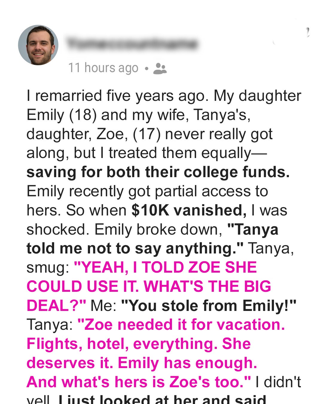 “You took ten thousand dollars,” I said. “Without asking. From my daughter’s account! What could have been so important that you’d do that without talking to me first?”