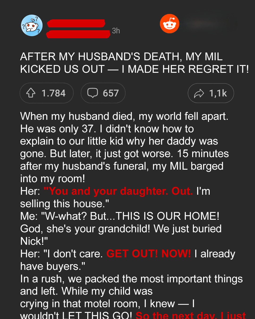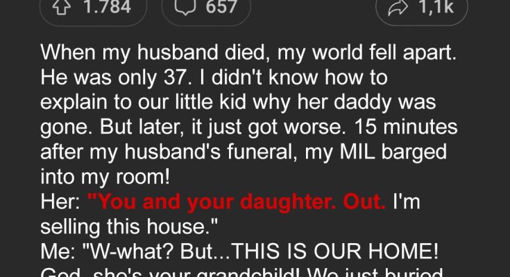 At my husband’s funeral, I could barely hold myself together — let alone explain death to our daughter. But the real blow came hours later when my mother-in-law walked into our home and calmly told me to leave. Grief had barely begun, and I was already being erased.I stood at the edge of the grave, holding Ellie’s small hand like it was the last anchor I had to this earth.My fingers were wrapped around hers so tightly, I worried I might hurt her, but I couldn’t let go.