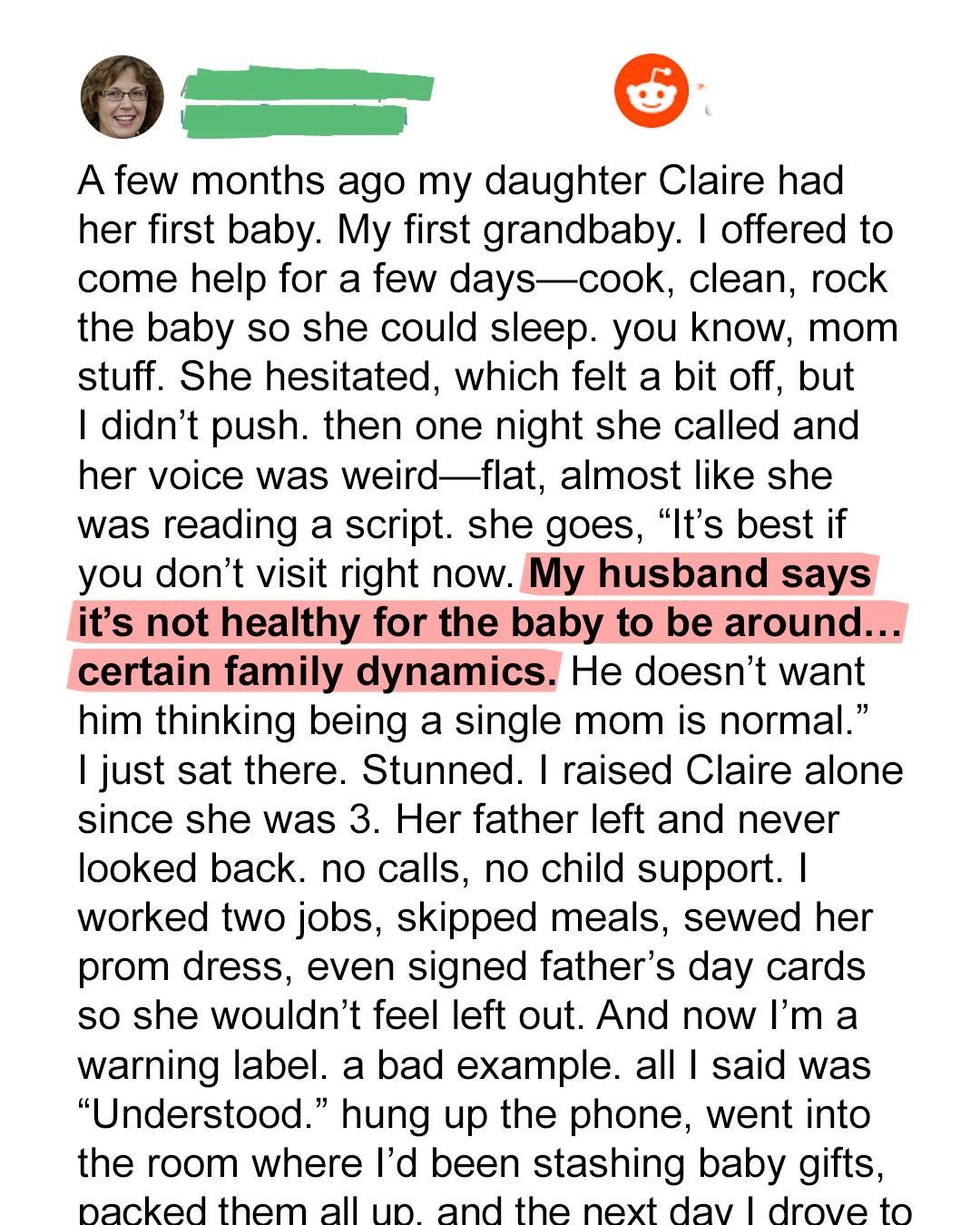 I let myself feel all of it. The rejection. The erasure. The shame of being treated like a stain on her new, tidy life.