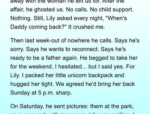 Three years ago, when our daughter Lily was just two, he chose to leave and move in with the woman he was secretly cheating with. Rachel. She lived just a few blocks away.He didn’t fight for us. He didn’t cry or hesitate. He packed his things and left, like we were nothing.I didn’t beg him to stay. My pride wouldn’t let me. But as Lily grew, her questions began to stab at my heart like knives.