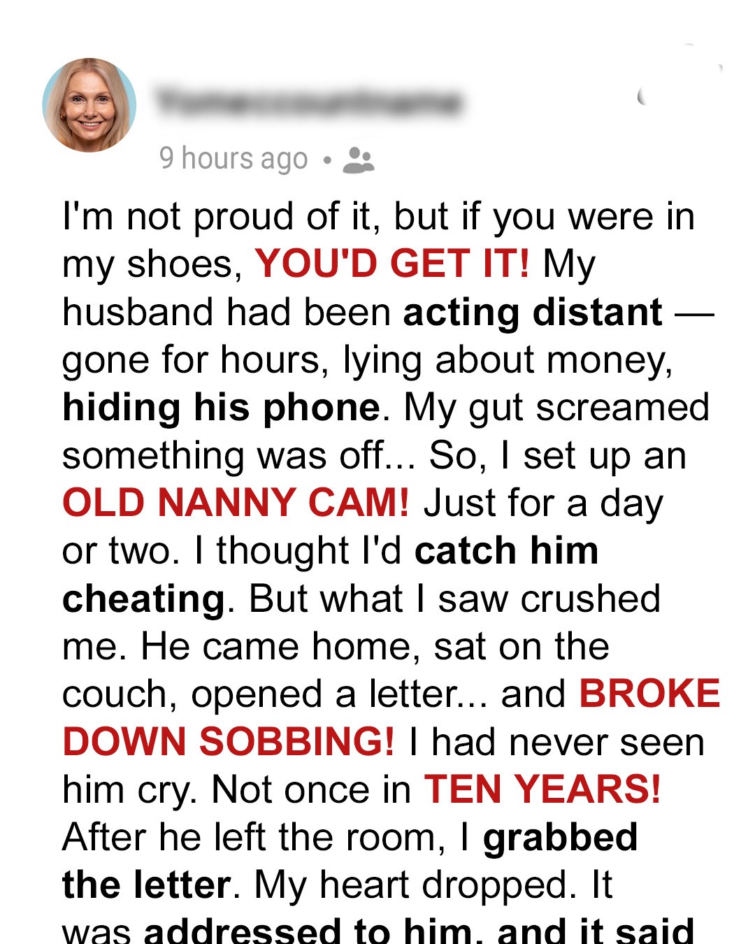 When my husband started acting strange, I suspected the worst. I decided to get actual proof of his betrayal, but what I discovered broke me down in tears! Luckily, the truth brought us closer than ever.I had always considered myself a reasonable person, someone who approached situations with a level head. But when it came to my marriage, all that seemed to fly out the window! For weeks, maybe even months, a heavy cloud of doubt hung over my head. I believed my husband was cheating, but when I discovered the actual truth, I was shattered.