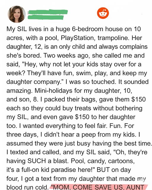 When my sister-in-law invited my children to spend part of their summer at her sprawling estate, I believed—without hesitation—that she was offering them something special. The kind of experience I could never give them myself. A place with space to roam, a pool big enough to feel like a resort, and every indulgence money could buy.