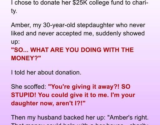 She followed me into the kitchen, her heels clicking like gunshots on the hardwood. “So…” she said, setting her bag on the counter, “What are you doing with Emma’s college fund?”
