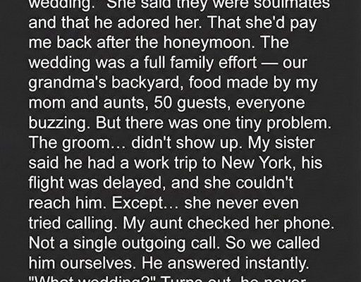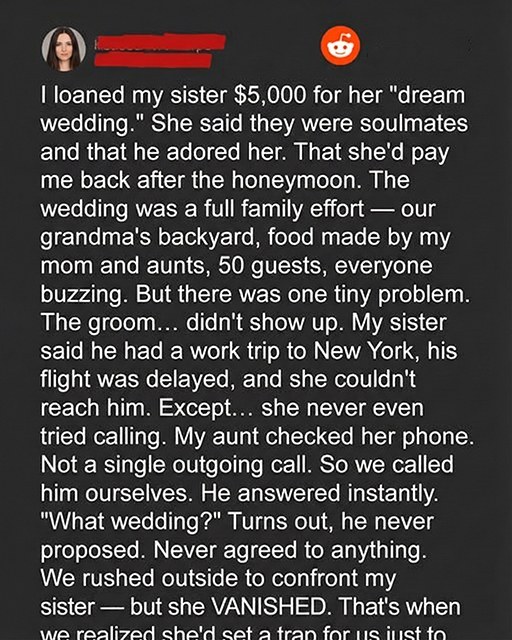 A fake wedding. And she used our trust to fund it. She disappeared with the money and the gifts.